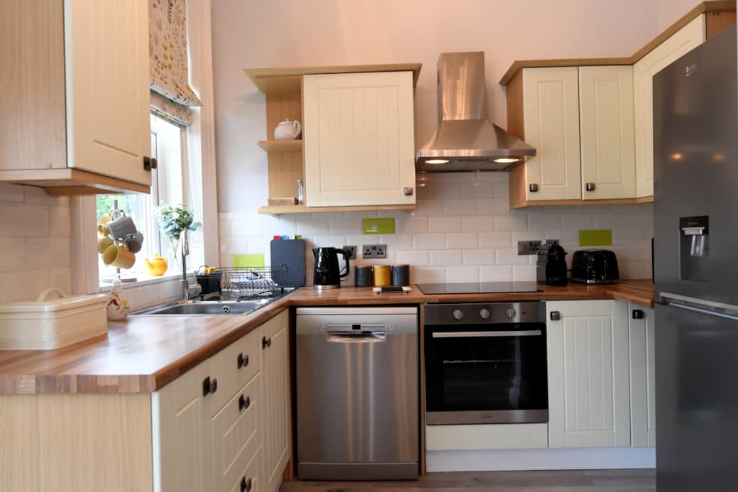 Kaffemaskine, Køkkenredskaber, Opvaskemaskine, Grill, Køkken komfur, Mikrobølgeovn, Ovn, Køleskab, Brødrister, Vanddispenser